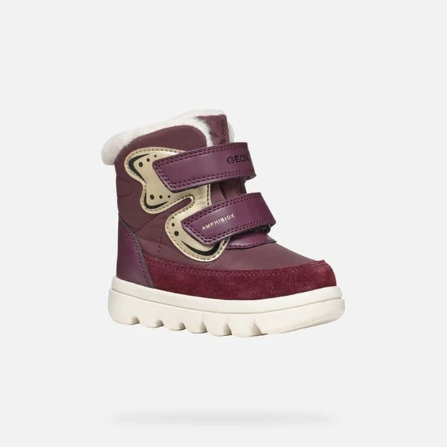 Bottines pour petite fille imperméables, chaudes et respirantes au look outdoor, idéales lors des journées froides et pluvieuses. Proposées ici en violet, avec des détails platine et un rembourrage en fausse fourrure, ces chaussures sont rehaussées par une vive application en forme de papillon sur la tige. Réalisées en nylon et cuir velours, les Willaboom ABX sont amorties, souples et faciles à enfiler grâce à leur fermeture à double scratch.